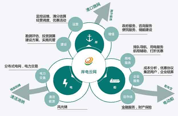 岸電云網圍繞“岸、電、船“三項資源核心,依托國網公司戰略布局,整合產業鏈上下游資源,開展技術賦能、生態賦能和產業賦能,建設以岸電服務為基礎、全產業鏈的立體化能源服務網絡,形成互聯互通、共享共贏的低碳清潔的能源服務生態體系。