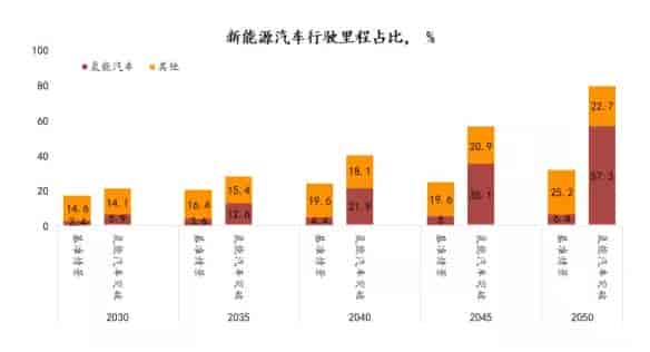 我國能源消費需求逐步向清潔化方向發(fā)展,高端制造業(yè)及服務(wù)業(yè)的快速發(fā)展,以及對污染物排放的控制將使得電力和天然氣比重穩(wěn)步提升。新能源汽車在國家政策不斷支持下也會大量取代燃油車,報告預測在2045年前后,兩者的市場占有率趨于勢均力敵的平衡態(tài)勢。