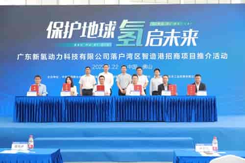 線上活動同時連線了廣東佛山的分會場,此次活動得到了佛山市禪城區人民政府和南莊鎮人民政府的高度重視和大力支持。佛山分會場由聯合會牽頭“南北協同”,地方政府與地方頭部企業聯動,共同推動氫能燃料電池工業車輛在大灣區的應用及推廣工作。借此,新氫動力分別與佛山市禪城區南莊鎮政府、廣晟投資發展有限公司、盈峰環境科技集團簽署了戰略合作協議,共同推動氫能工業車輛、環衛車輛的研發及生產制造,在大灣區“先試先行”開展多領域氫能終端產品的示范應用,著力打造佛山陶瓷行業綠色搬運體系示范基地,共同提升佛山氫能技術及產業發展的持續創新能力。