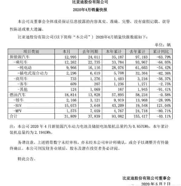 純電車型的銷量下降,相信與網約車市場不景氣,影響大批量采購有一定關系。同時,部分地區放寬了燃油車增量指標的入圍標準,使得一些消費者轉投傳統燃油車陣營。同樣的,比亞迪插電式混合動力車型銷量在4月也呈現環比回落態勢。
