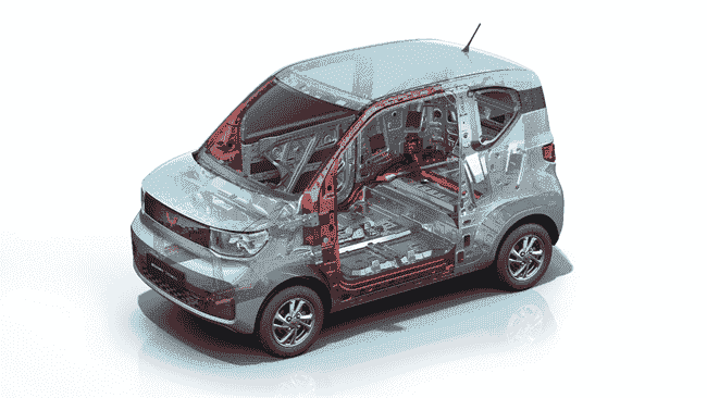 籠式高強鋼車身骨架——宏光 MINI EV整車安全性完全滿足國家汽車相關安全法規要求。其車身結構與湖南大學安全碰撞專家團隊深入聯合開發而來,乘員艙和電池艙分別采用籠式和框架式高強鋼骨架,能夠在實現輕量化的同時滿足對乘客及電池的高維安全防護需求。