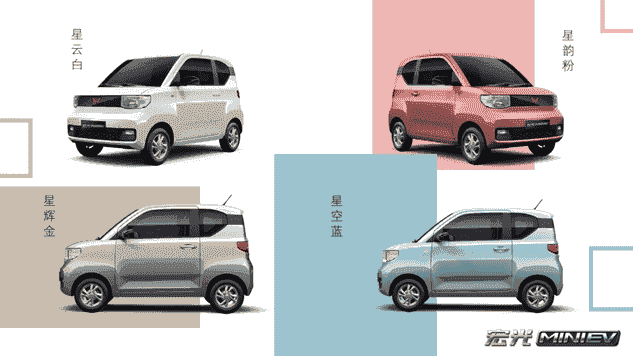 多彩車色——宏光MINI EV提供星空藍、星云白、星韻粉、星輝金四種車身顏色,其中星空藍、星韻粉兩種顏色在市場上極為罕見,讓這款“宏光小神車”變身移動的視覺焦點,彰顯車主獨特的審美品位。