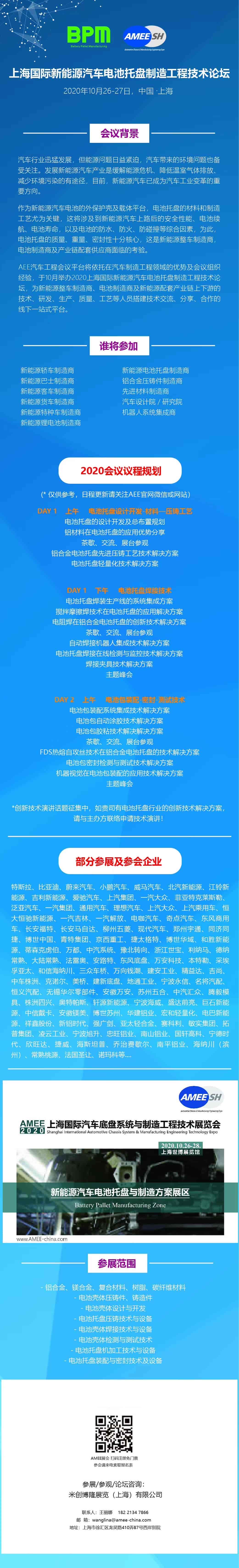 AEE汽車工程會議平臺將依托在汽車制造工程領域的優勢及會議組織經驗,于10月26-27日舉辦BPM2020上海國際新能源汽車電池托盤制造工程技術論壇,為新能源整車制造商、電池制造商及新能源配套產業鏈上下游的技術、研發、生產、質量、工藝等人員搭建技術交流、分享、合作的線下一站式平臺。